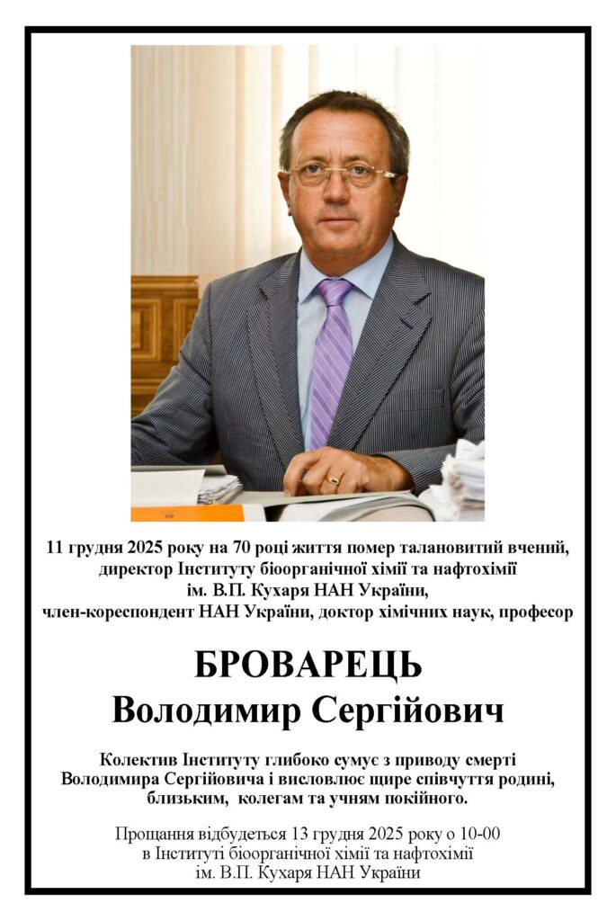Володимир Сергійович продовжував працювати до останніх днів свого життя. Пройдений ним шлях – взірець відданості улюбленій справі. Завдяки своїм визначним людським якостям, винятковій працелюбності та дивовижній працездатності, науково-організаційному дару та непересічному таланту Володимир Сергійович Броварець здобув великий авторитет і повагу наукової спільноти.