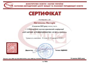 Сертифікат учасника Міжнародної конференції “Органічне агровиробництво освіта і наука”